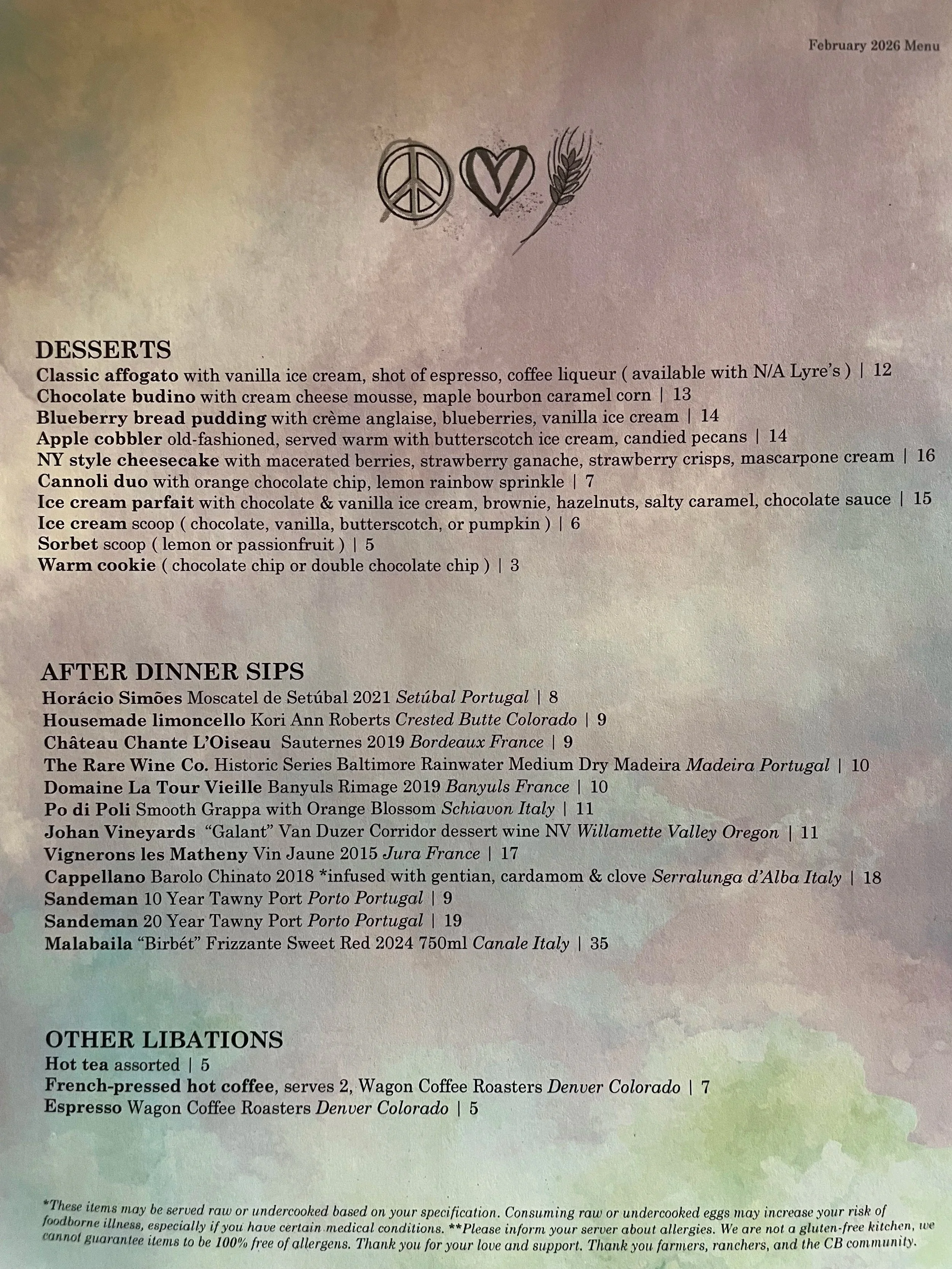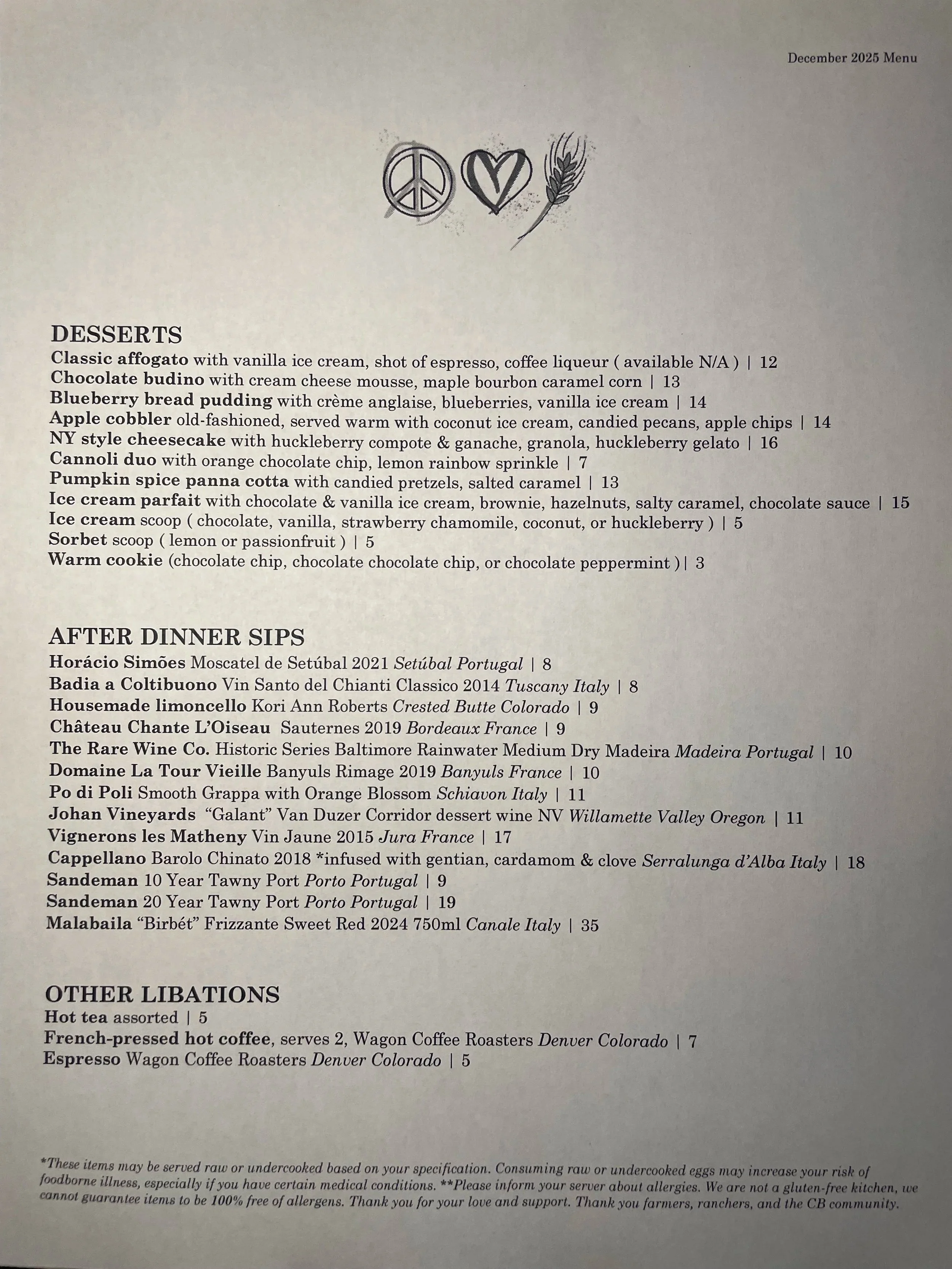Our menu changes with the seasons and availability. Tonight’s menu might slightly vary.