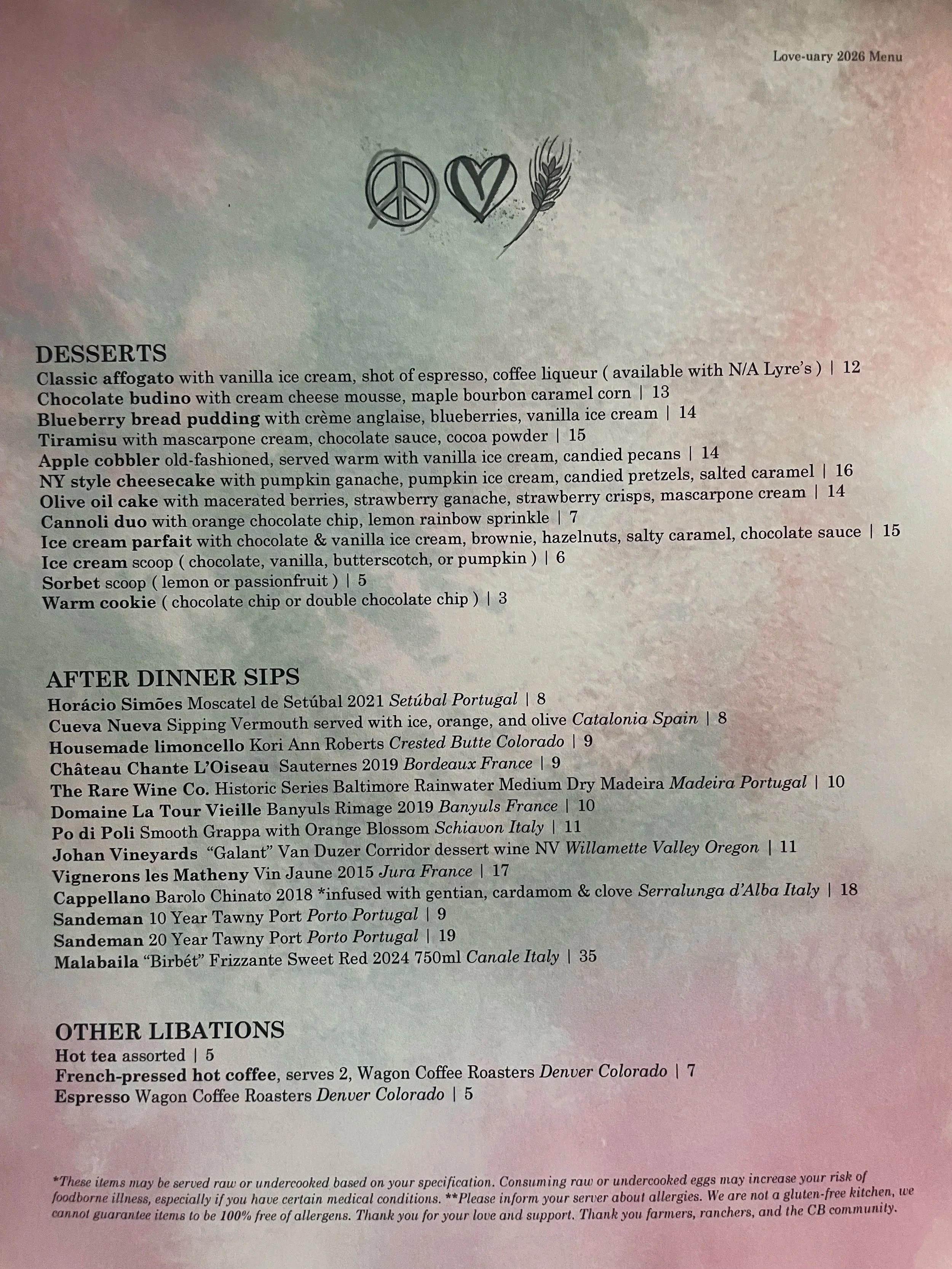 *Not all desserts available for take-out.